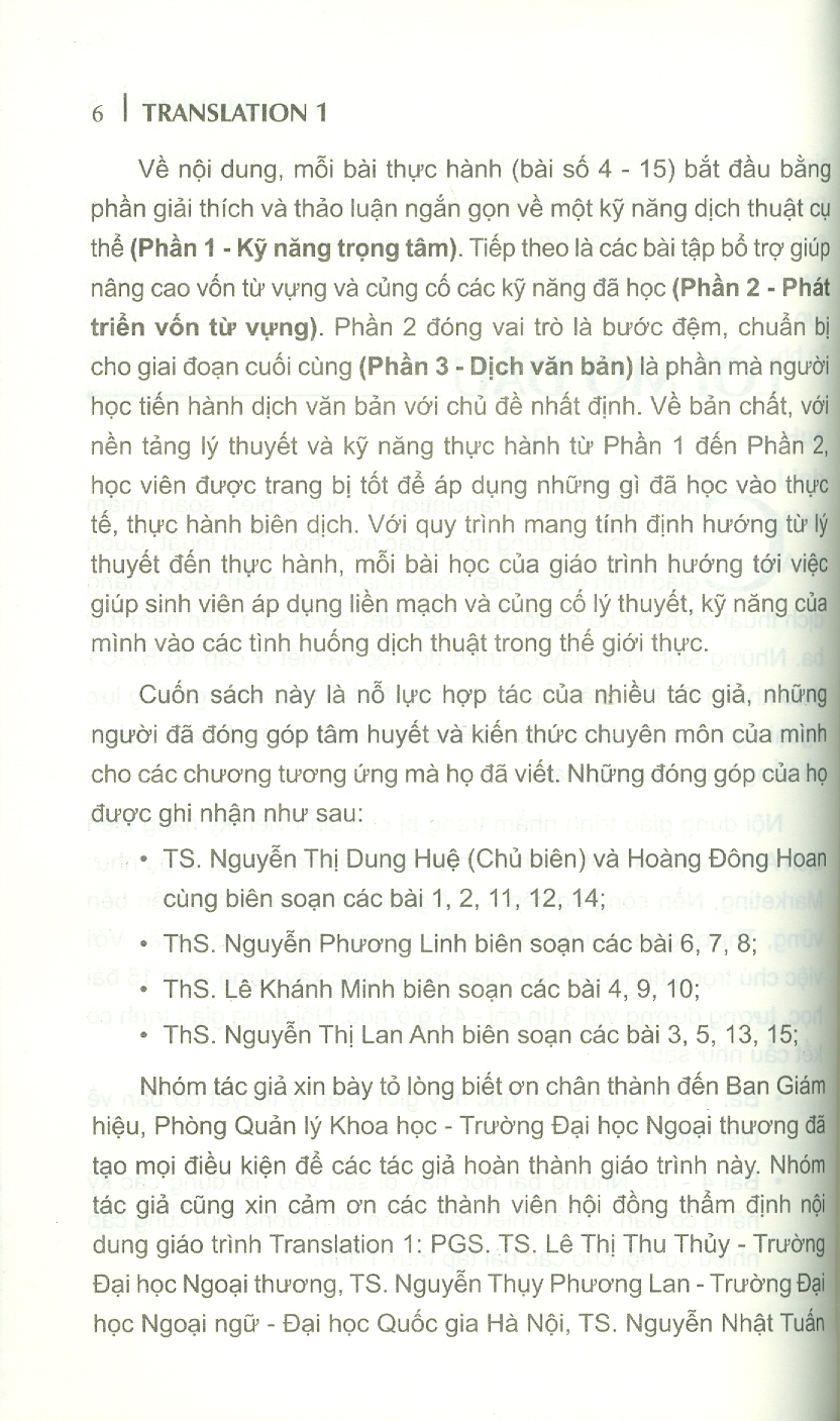✨Translation 1 - Trường Đại học Ngoại Thương ; TS. Nguyễn Thị Dung Huệ chủ biên, ThS. Nguyễn Phương Linh, ThS. Lê Khánh Minh, ThS. Nguyễn Thị Lan Anh