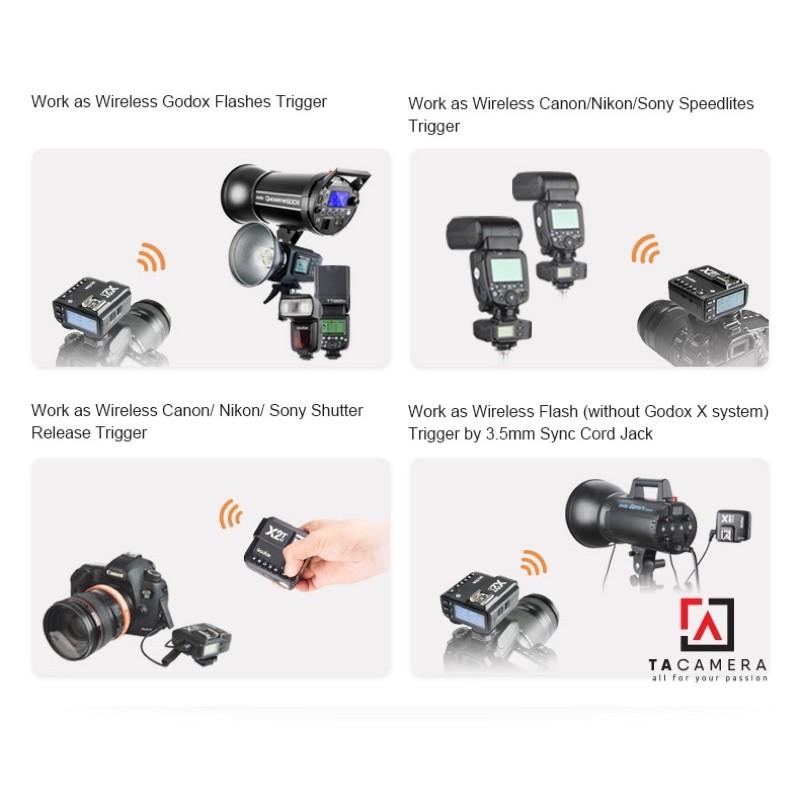 - Triger Godox X2T sử dụng cho máy ảnh Canon Nikon Sony Fujifilm Olympus Pentax