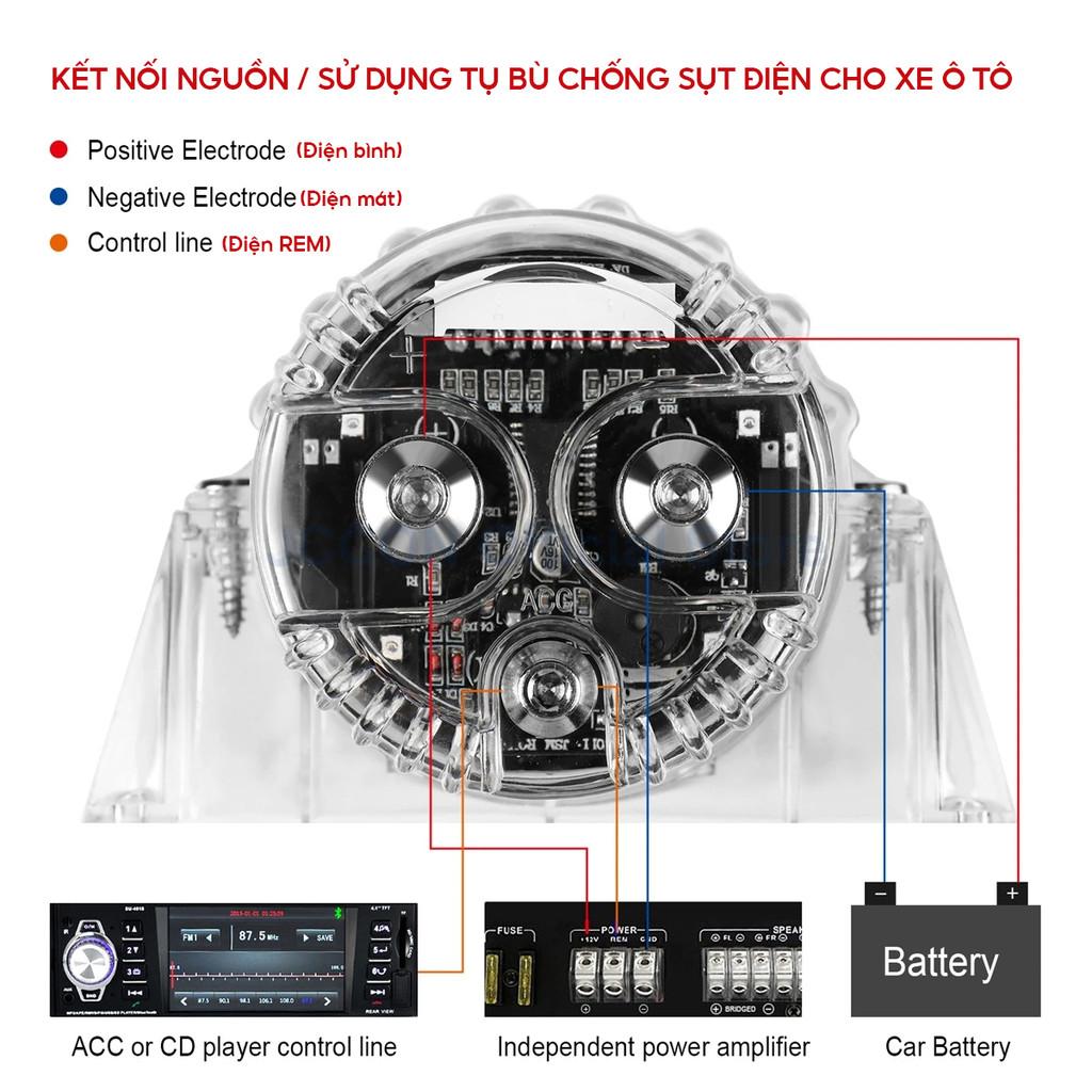 Tụ bù điện, hay còn gọi là tụ điện, là linh kiện quan trọng trong hệ thống âm thanh ô tô. Nó giúp cải thiện chất lượng tín hiệu, giảm thiểu nhiễu, và bảo vệ nguồn điện trong xe, ngăn ngừa tình trạng xe dừng đột ngột do ắc quy yếu hoặc khó khởi động sau khi lắp đặt các thiết bị âm thanh chất lượng cao.