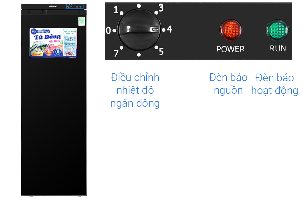 Tủ đông đứng Sanaky 230VD3, 213 lít, 7 ngăn, dàn đồng, inverter tiết kiệm điện