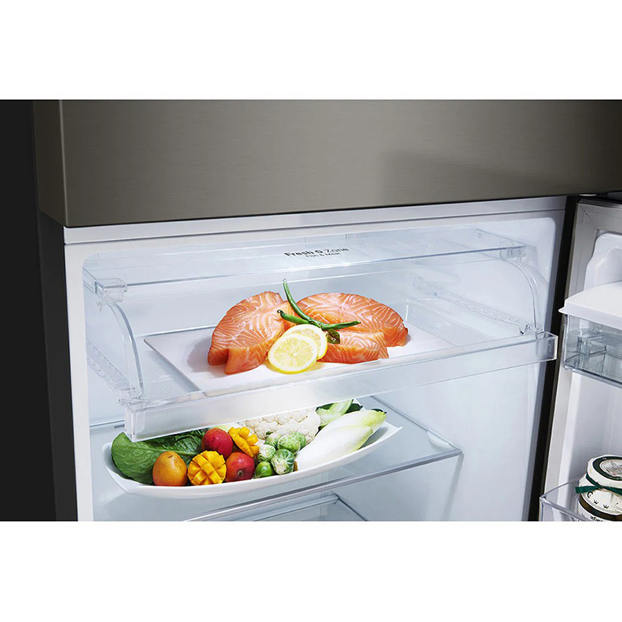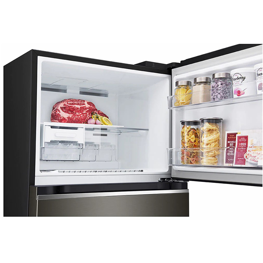 Tủ lạnh LG Inverter 374 lít GN-D372BLA sở hữu kiểu dáng thon gọn, gam màu đen sang trọng kết hợp với mặt cửa tủ là thép không gỉ tạo được độ bóng cao cho tủ. Là kiểu tủ ngăn đá trên quen thuộc nên dễ dàng kết hợp với gian bếp của gia đình Việt.