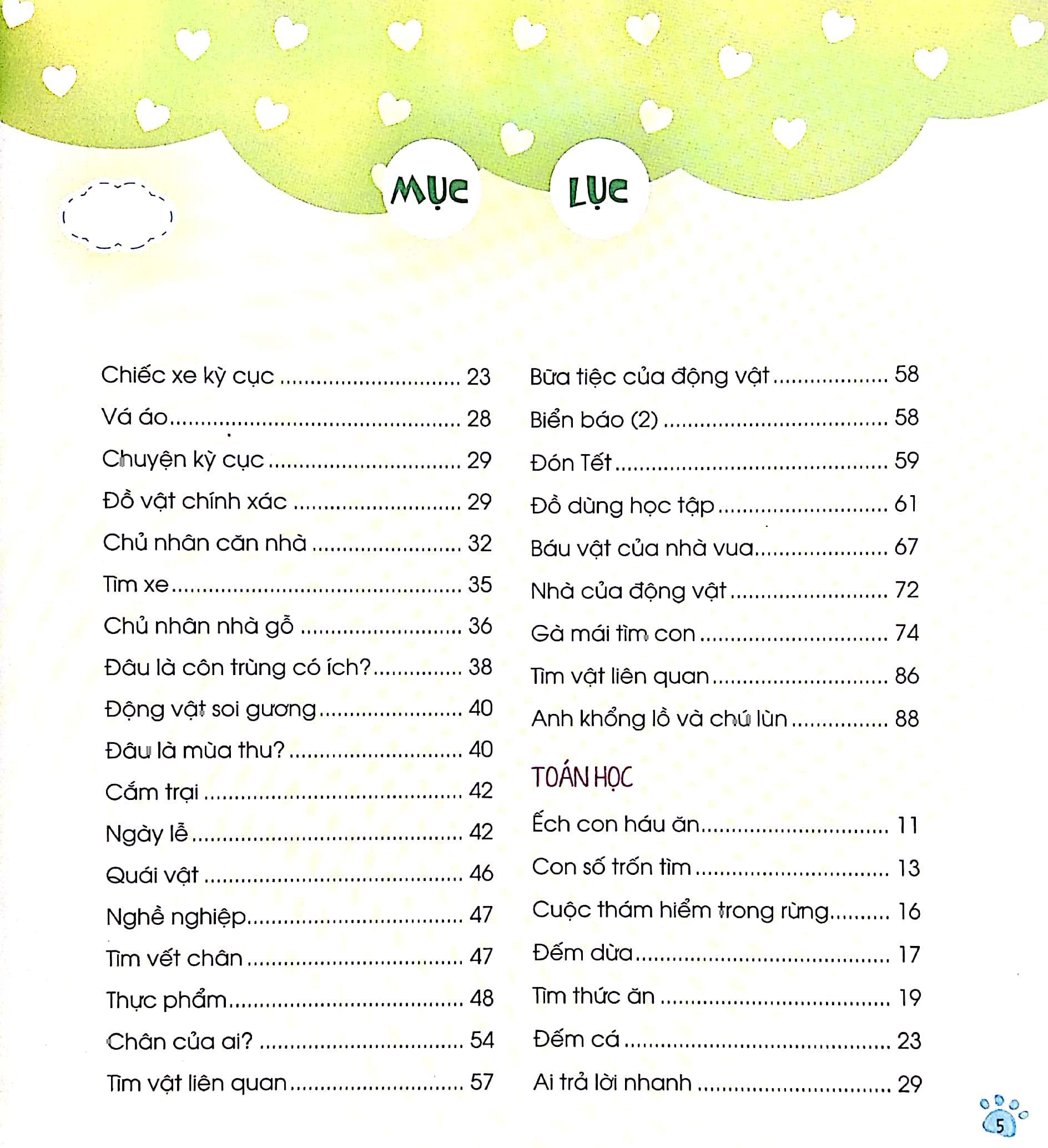 Bộ sách gồm 6 cuốn dành cho trẻ từ 4 đến 6 tuổi, tổng số 540 trang được in màu toàn bộ. Trong đó có 960 bài tập bằng hình ảnh và trò chơi được