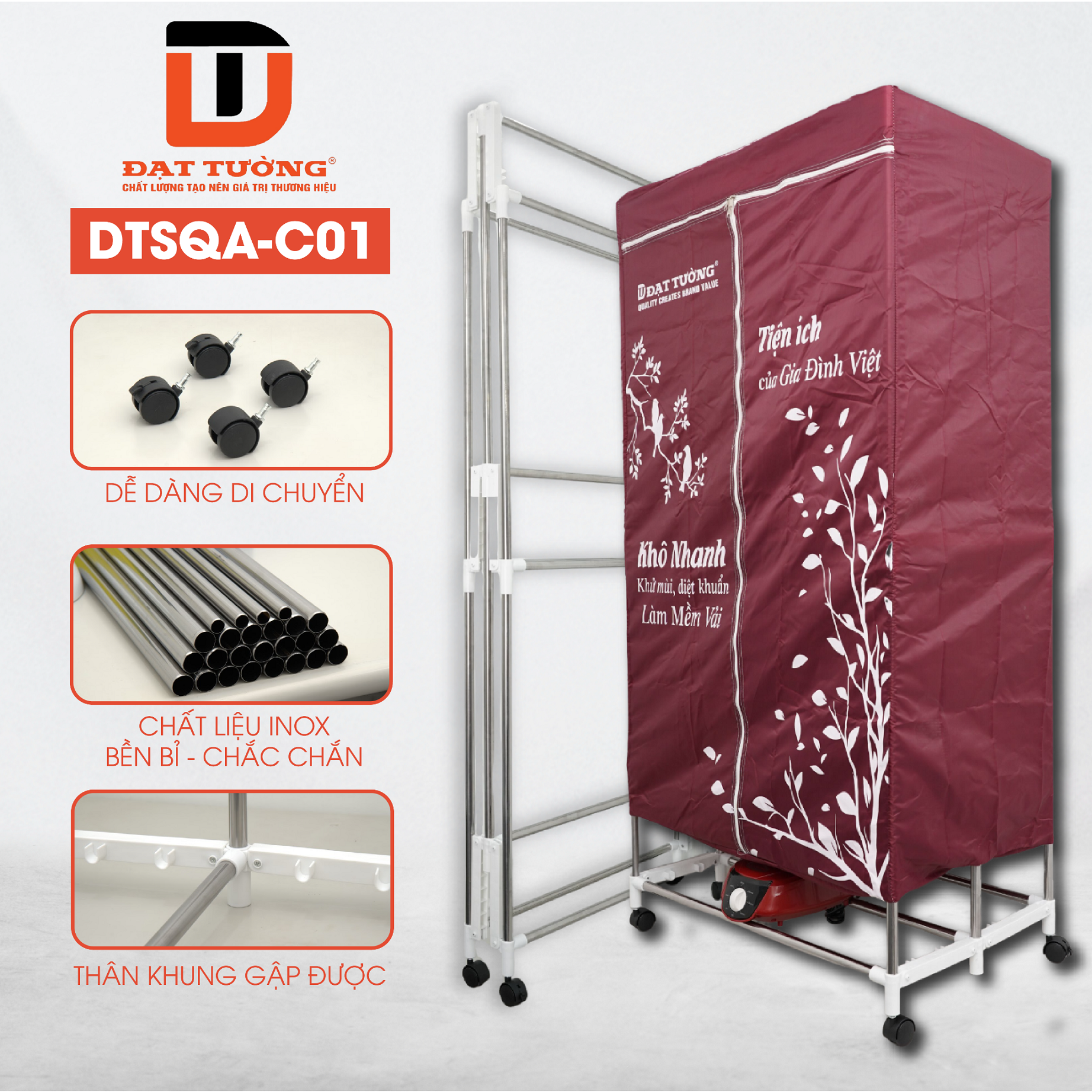 Tủ Sấy Quần Áo Đạt Tường, Máy Sấy Quần Áo Công Suất 2000W, Sấy Nhanh, Khử Khuẩn, Loại Bỏ Mùi Hôi- DTSQA- CO2 ĐẶC ĐIỂM NỔI BẬT: Làm khô nhanh quần áo, giúp loại bỏ mùi