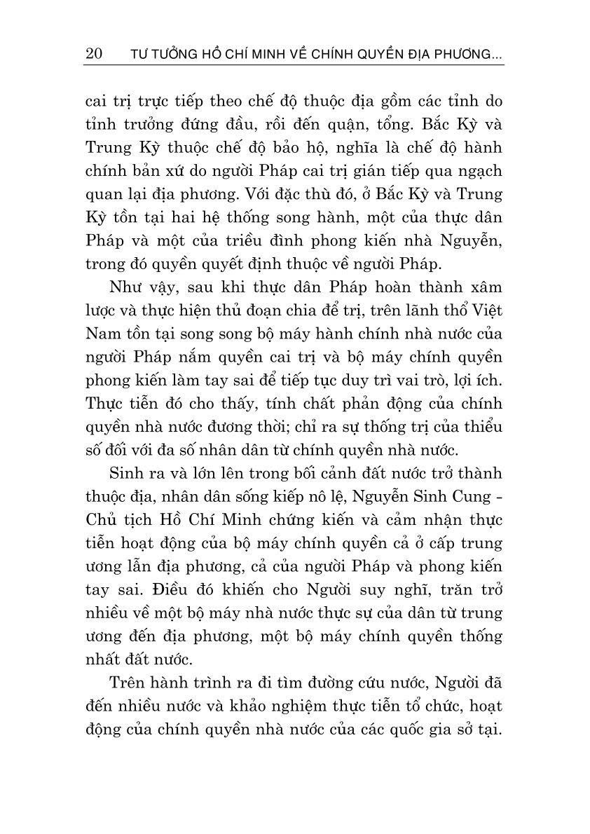 Để vận dụng tốt tư tưởng Hồ Chí Minh về chính quyền địa phương, góp phần hoàn thiện chính quyền địa phương trong giai đoạn mới, Nhà xuất bản Chính trị quốc gia Sự thật xuất bản cuốn sách chuyên khảo Tư tưởng Hồ Chí Minh về chính quyền địa phương và vận dụng xây dựng, hoàn thiện chính quyền địa phương ở Việt Nam hiện nay do PGS.TS. Phạm Minh Tuấn, TS. Trương Cộng Hòa và TS. Quách Thị Minh Phượng cùng tập thể tác giả biên soạn.