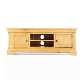 Là sự kết hợp hoàn hảo giữa sức quyến rũ vượt thời gian với tính thực dụng hiện đại, mẫu tủ TV gợi nhớ đến phong cách cổ điển Pháp thế kỷ 19. Thuộc bộ sưu tập Victoria đặc trưng bởi mái vòm và những đường cong duyên dáng. Chính vì thế, nếu không có chương trình gì hay trên TV thì chiếc tủ này cũng giúp bạn có thứ để ngắm nghía, chiêm ngưỡng. Hai hộc với kệ di động để cất giữ đồ dùng không muốn trưng bày, còn bề mặt và các ngăn chính giữa sẽ giúp bạn để các thiết bị âm thanh giải trí hay những đồ trang trí khác. Chất liệu gỗ sồi trắng Mỹ nhập khẩu, có giá trị kinh tế cao và được chế tác hoàn toàn thủ công bởi những người thợ lành nghề. Toàn bộ bề mặt được sơn phủ PU kỹ càng, giữ nguyên được vẻ đẹp của vân gỗ, đồng thời bảo vệ lớp gỗ lâu bền trong các điều kiện khí hậu khác nhau