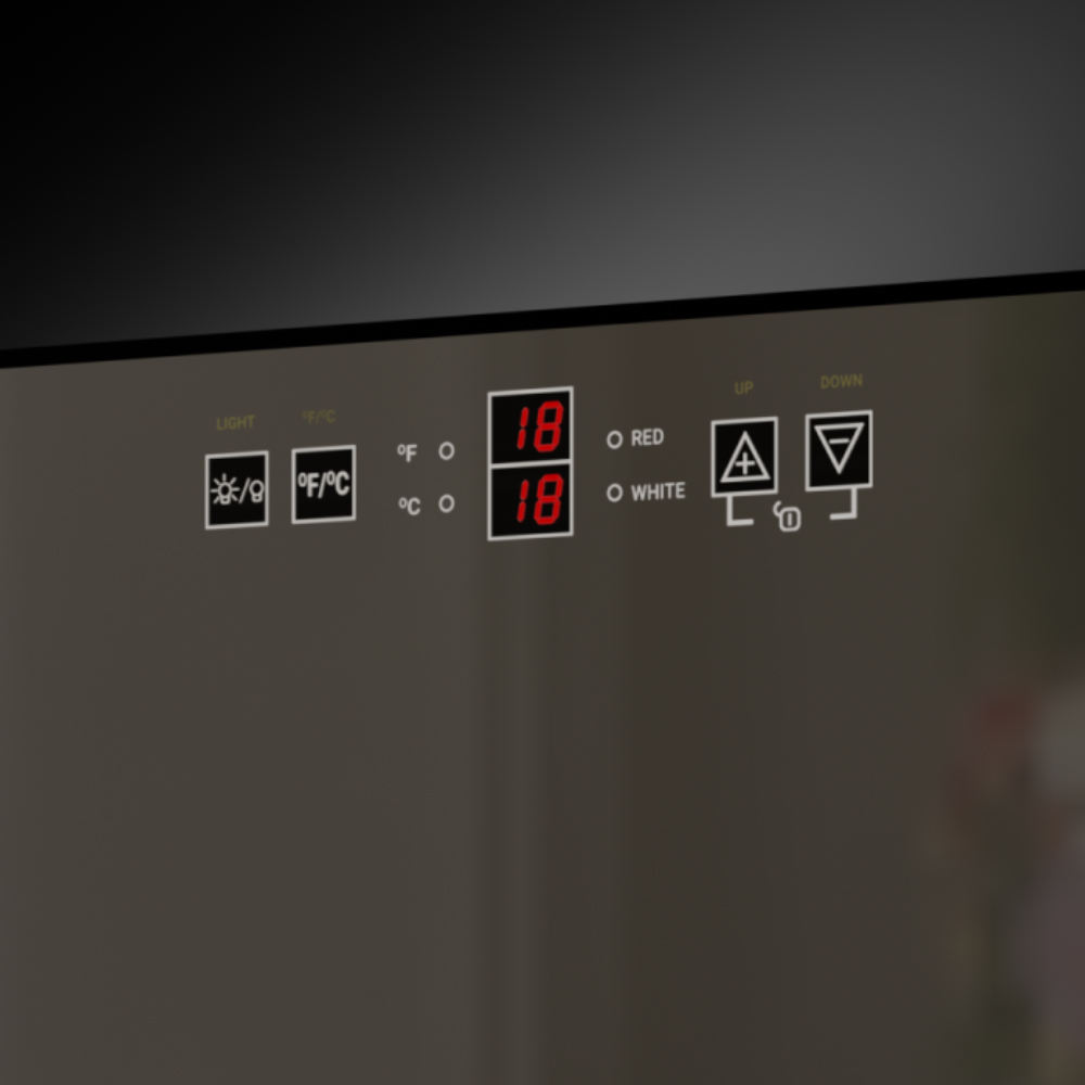 Khác với ngăn ở trên là ngăn chuyên biệt để bảo quản rượu vang sẽ được thiết kế tối (không có đèn), vùng lưu trữ lạnh tại ngăn dưới được tích hợp đèn LED dịu nhẹ bên trong, thuận tiện cho quá trình sử dụng của người dùng hơn cả.