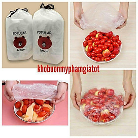 Set 100 màng bọc thực phẩm túi gấu, màng bọc thực phẩm PE có chun bọc đồ ăn co giãn tái sử dụng nhiề