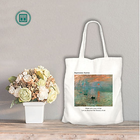 Túi Canvas - Impression, Sunrise - Monet Tên sản phẩm: Túi Canvas - Impression, Sunrise - Monet Kích thước: rộng 35 cm x cao 40 cm, nhỏ nhắn và tiện dụng Chất liệu: Vải canvas Màu