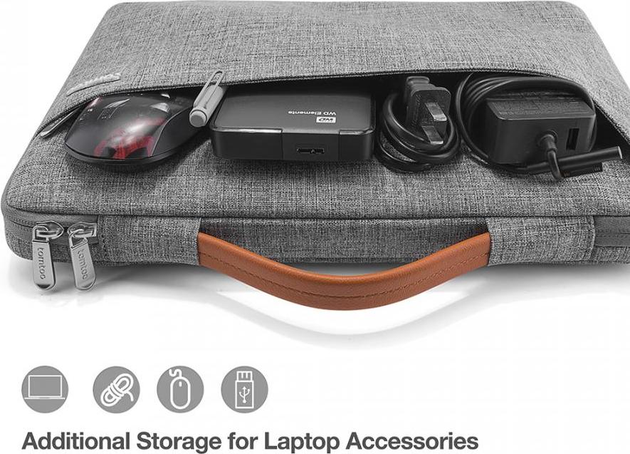 Ngoài ngăn đựng máy tính xách tay trung tâm, hộp đựng máy tính xách tay của tomtoc có ngăn khóa kéo lớn thứ hai để lưu trữ bổ sung. Với nhiều penholders, túi nhỏ và lớn và dây thun, vỏ máy tính xách tay của tomtoc giúp tổ chức cuộc sống số của bạn dễ dàng hơn bao giờ hết.
