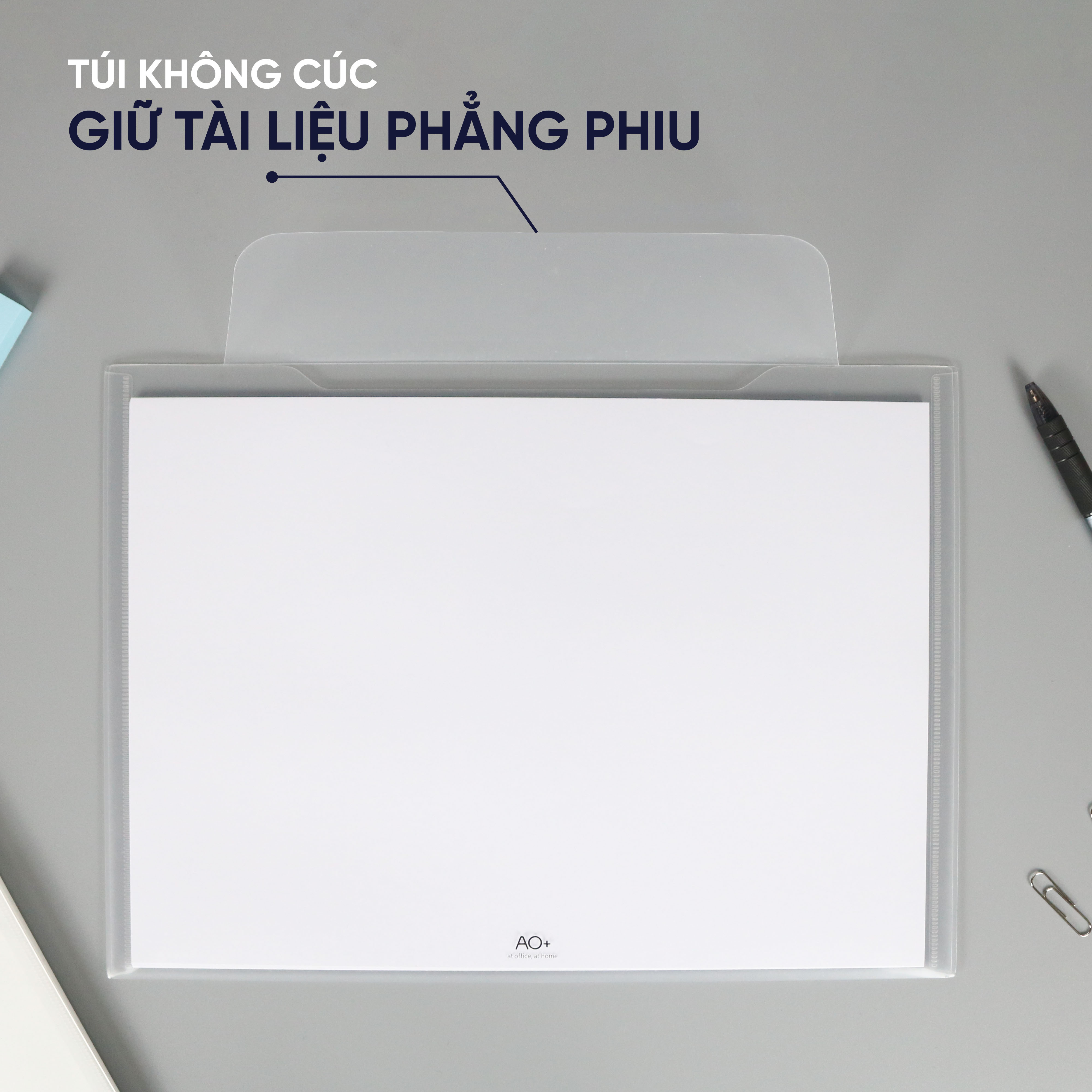 Túi đựng tài liêu A4 Clear Bag là sản phẩm hữu ích giúp bảo quản tài liệu, hồ sơ không bị bụi bẩn, cong vênh. Sản phẩm được làm từ chất liệu nhựa PP cao cấp thân thiện với môi trường với thiết kế không khuy cài độc đáo, điểm đặc biệt này giúp giấy tờ phẳng phiu hơn, không bị hằn vết như các loại túi đựng tài liệu A4 thông thường.