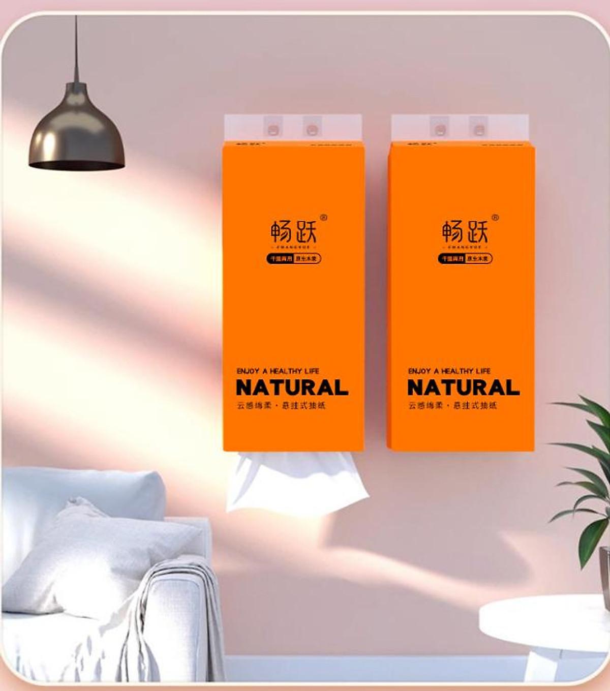 Thùng 4 Túi Giấy Ăn Treo Tường Natural tặng móc, Giấy Rút Treo Tường 4 Lớp Bằng Bột Gỗ Nguyên Sinh