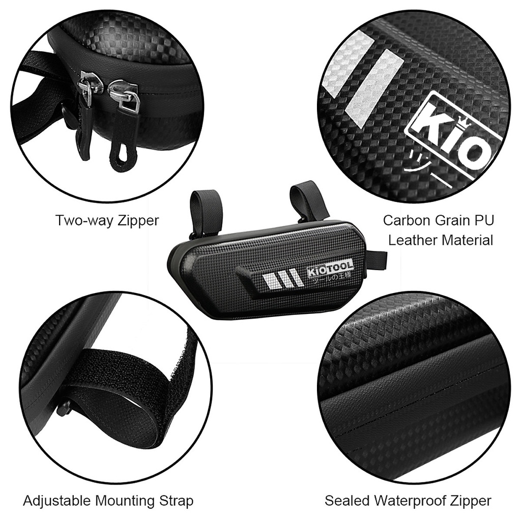 Túi treo sườn xe đạp thể thao xe máy Kiotool chống nước vân cacbon Dung tích 2L, đủ lớn để đựng điện thoại di động, ví, tai nghe, găng tay và các vật dụng cá