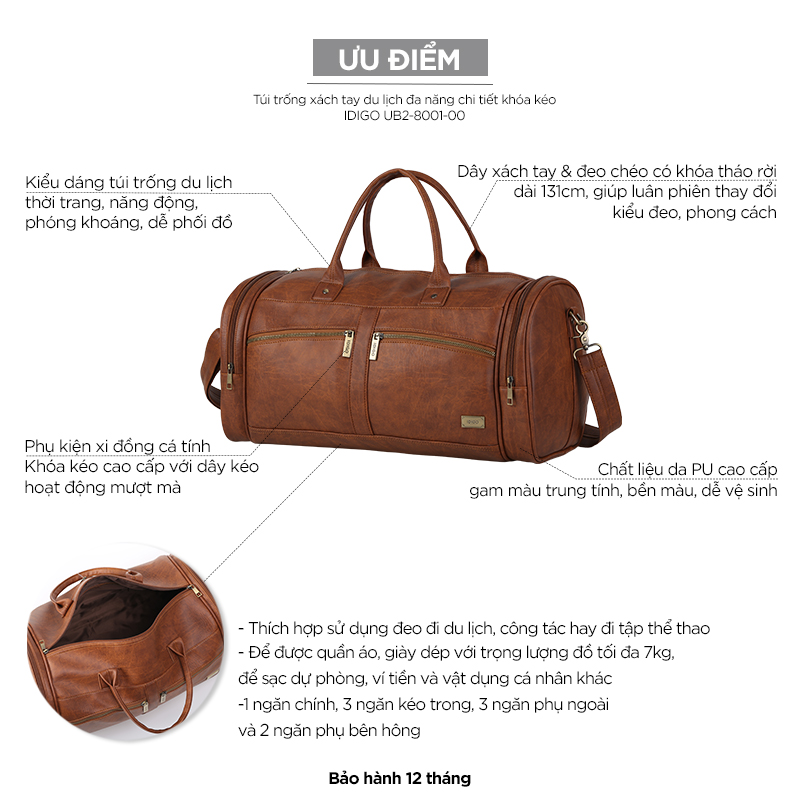 Túi trống xách tay du lịch đa năng chi tiết khoá kéo IDIGO UB2 - 8001 - 00 sẽ giúp bạn: