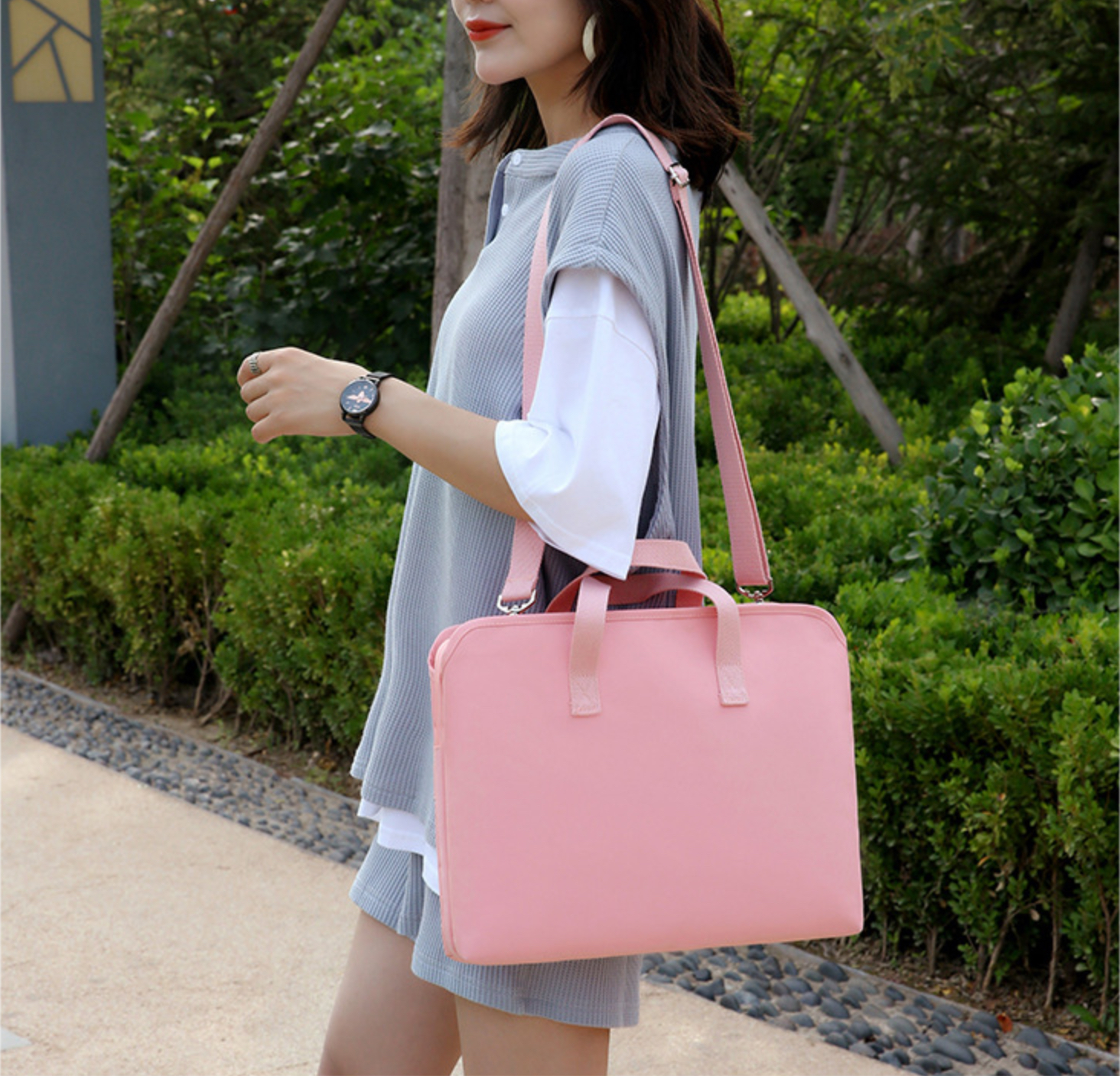 Thiết kế thời trang, hiện đại mang phong cách Hàn Quốc Với quai xách chắc chắn có khả năng chịu lực tới 9kg, quai đeo vai có thể tháo rời khi không sử dụng Chất