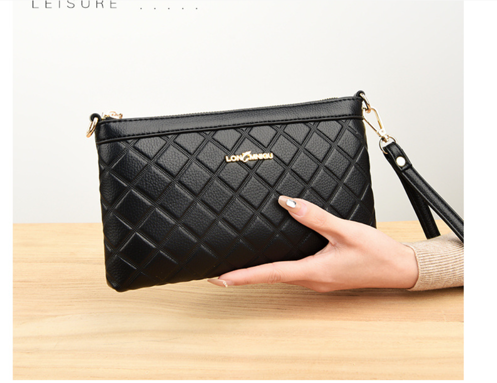 Ví da nữ cầm tay chần bông hình thoi Lata VN73 được thiết kế kiểu dáng lạ mắt, nhưng không kém phần thời trang, sang trọng. Chiếc ví được viền chỉ chắc chắn, bên trong