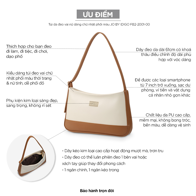 Chiếc Túi da đeo vai nữ dáng chữ nhật phối màu được thiết kế dáng túi đeo vai chữ nhật truyền thống với điểm nhấn phối màu thời trang ắt hẳn sẽ khiến cho các tín đồ yêu thích thời trang phải siêu lòng ngay từ ánh nhìn đầu tiên. Thấu hiểu được tâm tư của nàng, IDIGO cho ra mắt sản phẩm Túi da đeo vai nữ dáng chữ nhật phối màu IDIGO FB2-2001-00.