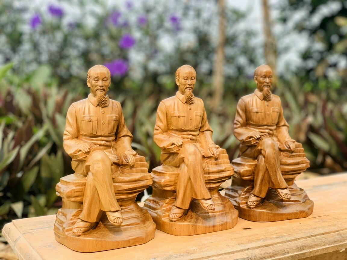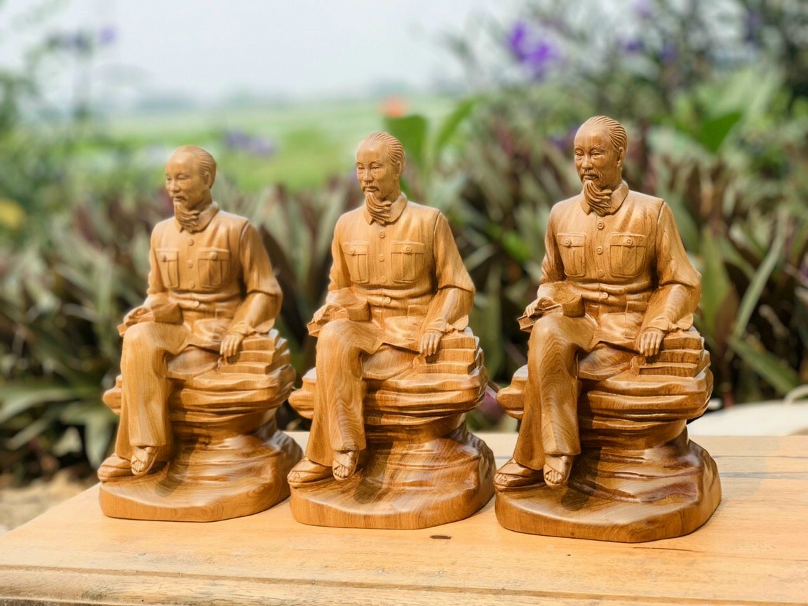 Mua tại TiktokTượng bác hồ được làm bằng chất liệu gỗ bách xanh liền khối tự nhiên 100% Kích thước cao 20×11×10cm _ Tượng bác hồ được trạm khắc tĩ mỉ tinh sảo kỳ công .Đi hầu hết tất cả mọi chi tiết góc ngách nội dung hoa văn của tượng đều được ngọt tĩa chỉnh sửa hoàn toàn bằng tay thủ công .Đồng thời tượng được kiểm định kỹ lưỡng cho vào thẩm sấy cho gỗ khô kiệt .Muc cho gỗ khô kiệt .Kết hợp với đánh giấy giáp nhiều nước cho sạch sẽ sờ mát lạnh .Rồi cho vào phun lót làm bóng mờ để giữ lại mầu sắc vân gỗ tự nhiên Tượng được làm và hoàn thiên do bàn tay khối óc tài hoa từ những người thợ giàu kinh nghiệm cũng như tay nghề cao trong làng nghề truyền thống