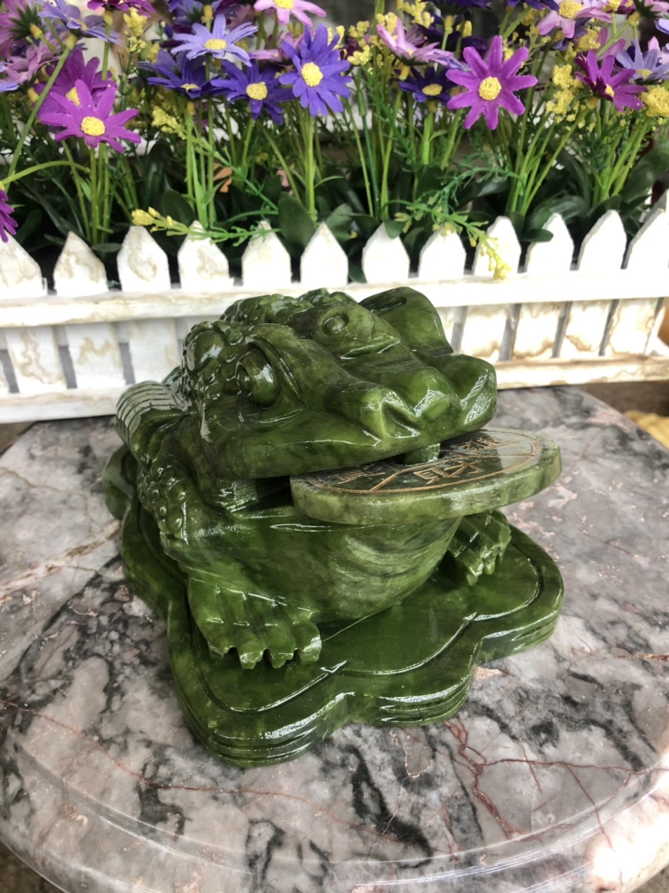 Chất liệu: Đá ngọc Ấn Độ Kích thước: Dài 13 cm x Rộng 10 cm x Cao 11 cm Khối lượng: 1,62 kg Thiềm Thừ được người xưa gọi là Cóc tài lộc, Cóc ba
