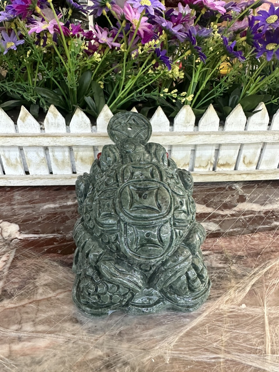 ✨Tượng Cóc Ba Chân, Cóc Ngậm Tiền, Thiềm Thừ phong thủy chiêu tài lộc đá ngọc serpentine - Dài 15 cm