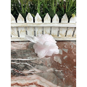 Chất liệu: Đá thạch anh hồng Kích thước: Dài 7 cm x Rộng 6 cm x Cao 5 cm Khối lượng: 290g Thiềm Thừ được người xưa gọi là Cóc tài lộc, Cóc ba chân