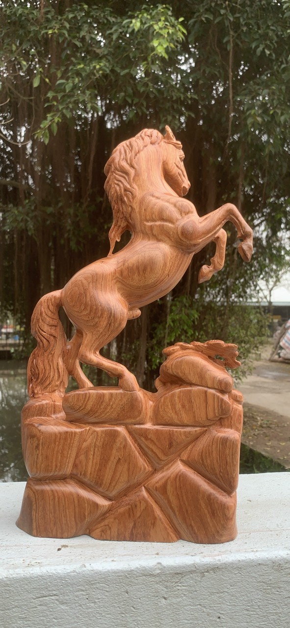 _ Tượng con ngựa nhất mã phi thiên được trạm khắc vô cùng tỉ mỉ tinh sảo kỳ công đi hầu hết tất cả mọi chi tiết góc ngách nội dung hoa văn của tượng đều được ngọt tỉa chỉnh sửa hoàn toàn bằng tay thủ công .Đồng thời tượng được kiểm định rất kỹ lưỡng như cho vào thẩm sấy cho gỗ khô kiệt .Mục đích trống dập nứt vênh mo mối mọt .Kết hợp với trà nhám đánh giấy giáp nhiều lần cho sạch sẽ ,sờ mát lạnh ,Song cho vào phun lót làm bóng mờ để giữ lại mầu sắc vân gỗ tự nhiên .Tượng được làm và hoàn thiện do bàn tay khối óc tài hoa từ những người thợ giàu kinh nghiệm cũng như tay nghề cao trong làng nghề truyền thống .Chính vì thế tượng con ngựa đã đáp ứng đầy đủ những tiêu trí ( Đẹp bền rẻ ) Thẩm mỹ nghệ thuật với chất lượng tuyệt vời