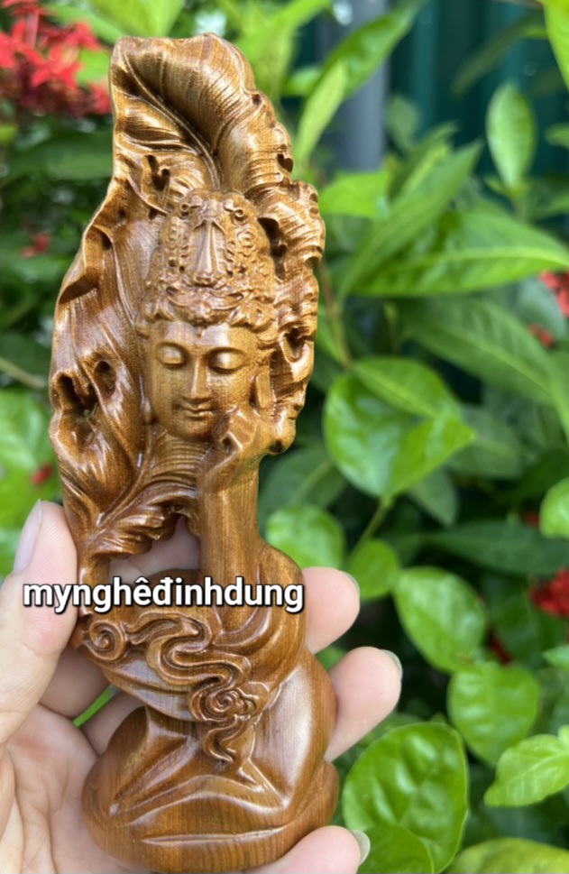 _ Tượng phật quan âm bồ tát nam hải được làm bằng chất liệu gỗ bách xanh liền khối tự nhiên 100% _ kt cao 22x9x7cm _ Tượng được chạm khắc gọt tỉa vô cùng