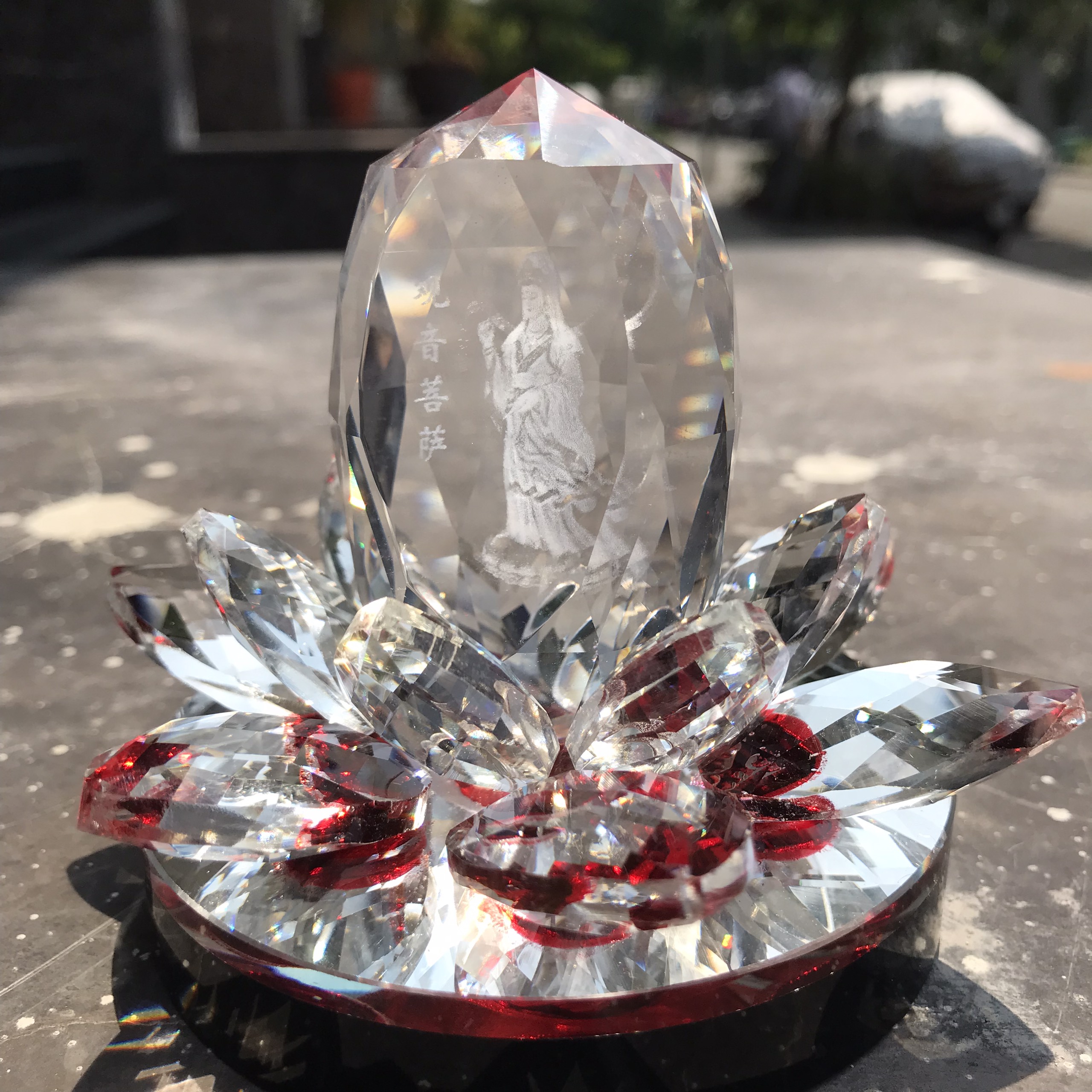 ✨Tượng Phật Bà Quan Âm Tòa Sen Pha Lê Trong, Tượng Nước Hoa Quan Âm, Tặng Kèm Tinh Dầu Và Đế Chống Trượt