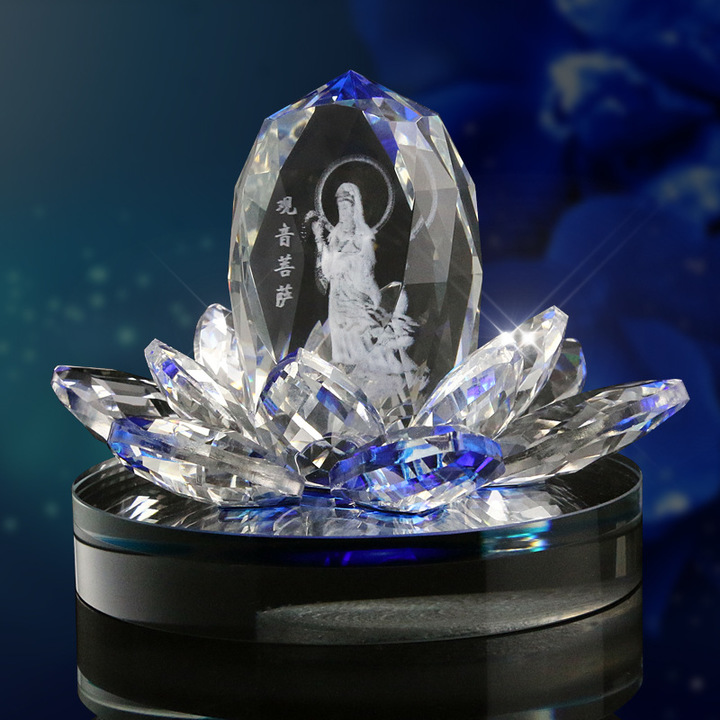 Đài sen pha lê tượng phật, đế đài sen quan âm bồ tát, đế trượng, trang trí tủ thờ
