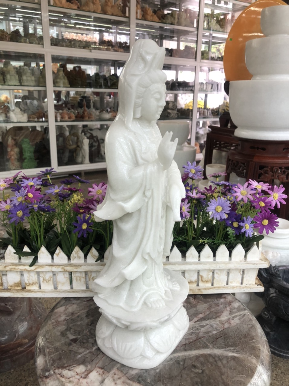 ✨Tượng Phật Bà Quan Thế Âm Bồ Tát đứng đài sen đá cẩm thạch trắng - Cao 40 cm