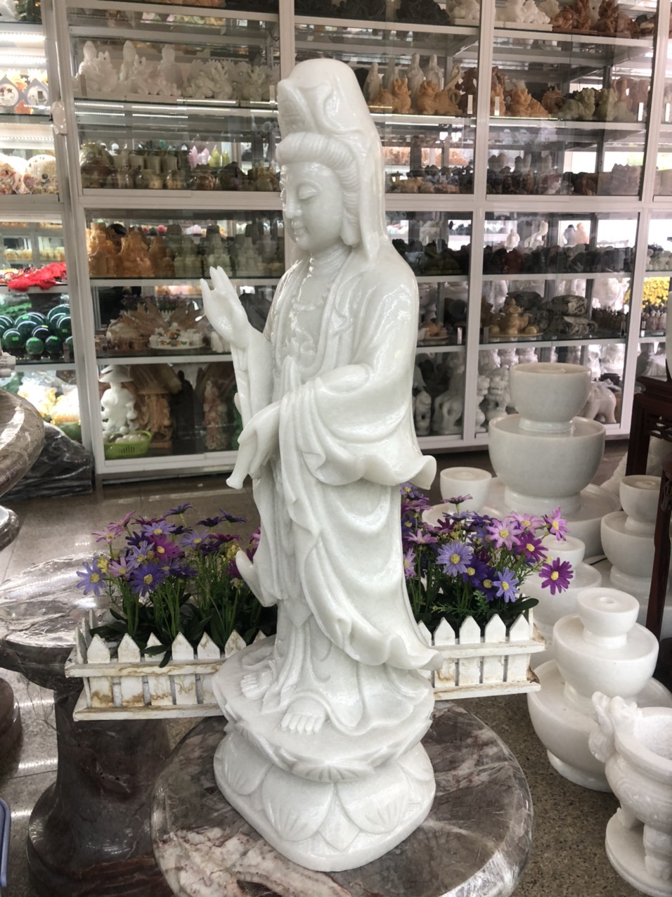 ✨Tượng Phật Bà Quan Thế Âm Bồ Tát đứng đài sen đá cẩm thạch trắng - Cao 60 cm