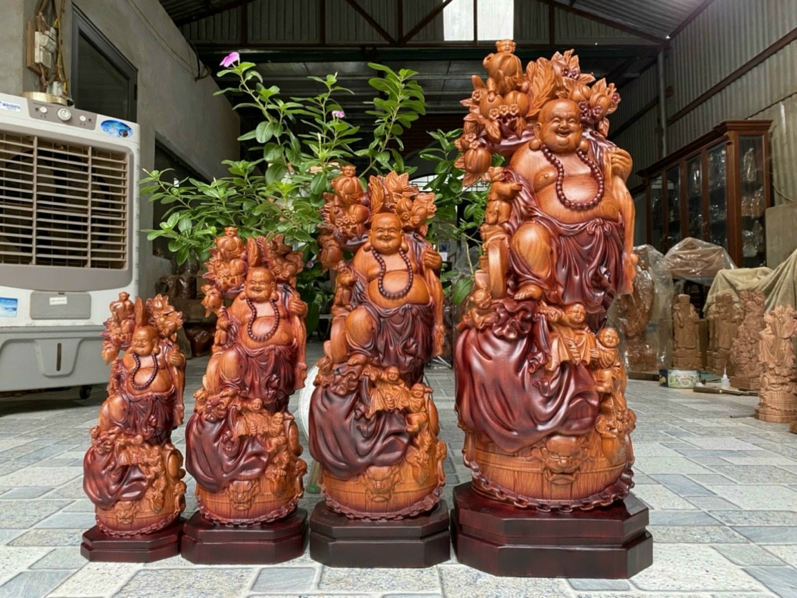 _ Tượng phật di lặc ngũ phúc được trạm khắc tỉ mỉ tinh sảo kỳ công .Đi hầu hết tất cả các chi tiết nội dung hoa văn của tượng đều được ngọt tỉa .Chỉnh sửa hoàn toàn bằng tay thủ công .Từ những người thợ dầy rặn kinh nghiệm .Cũng như tay nghề cao trong làng nghề truyền thống .Chính vì thế tượng phật di lặc đã đáp ứng đầy đủ những tiêu trí ( Đẹp bền rẻ) Thẩm mỹ nghệ thuật với chất lượng tuyệt vời