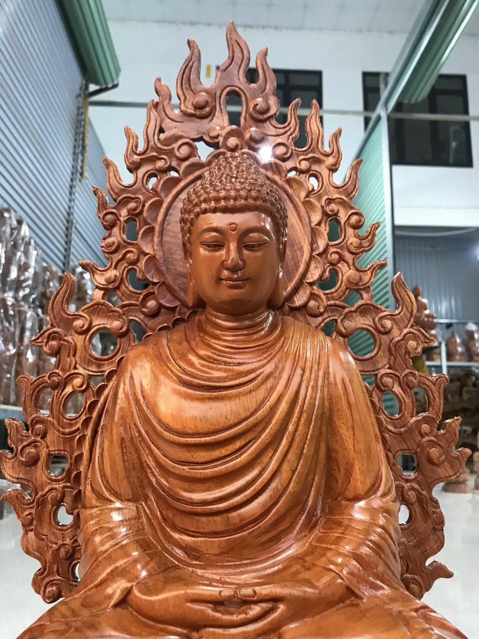 Mua tại Tiktok_ Tượng phật thích ca có lá chắn sau lưng được làm bằng chất liệu gỗ hương đá tự nhiên 100% ,Và được sơn pu phun bóng mờ giữ lại mầu sắc vân gỗ tự nhiên