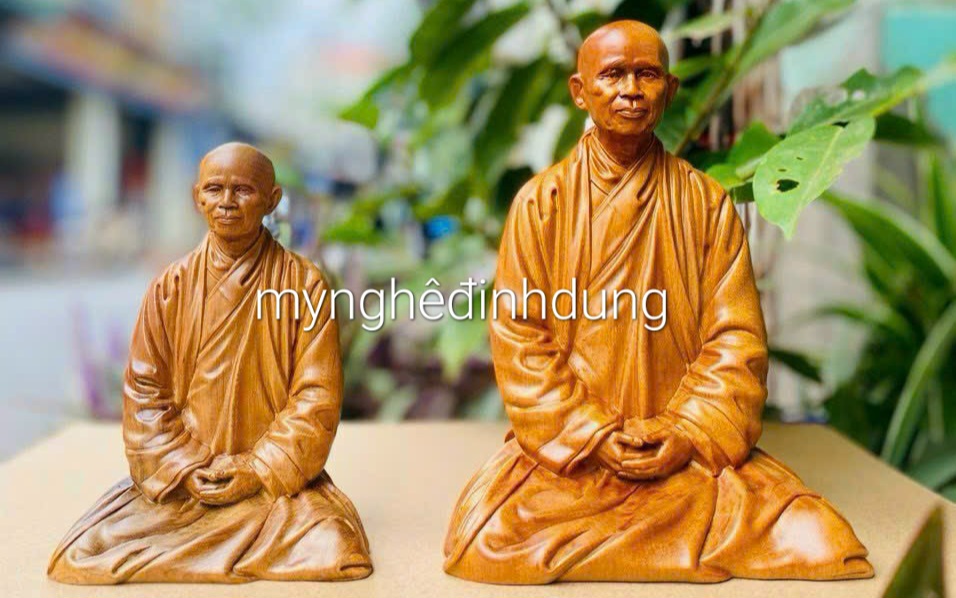 ✨Tượng thiềm sư thích nhất hạnh bằng gỗ bách xanh thơm nức kt cao 20×14×12cm