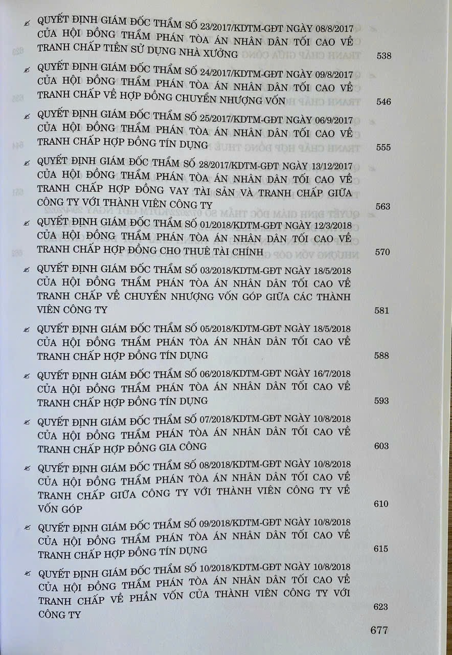 Tuyển tập các quyết định giám đốc thẩm của Hội đồng Thẩm phán Tòa án nhân dân tối cao về hình sự, dân sự, kinh doanh thương mại (từ năm 2017 đến năm 2023)