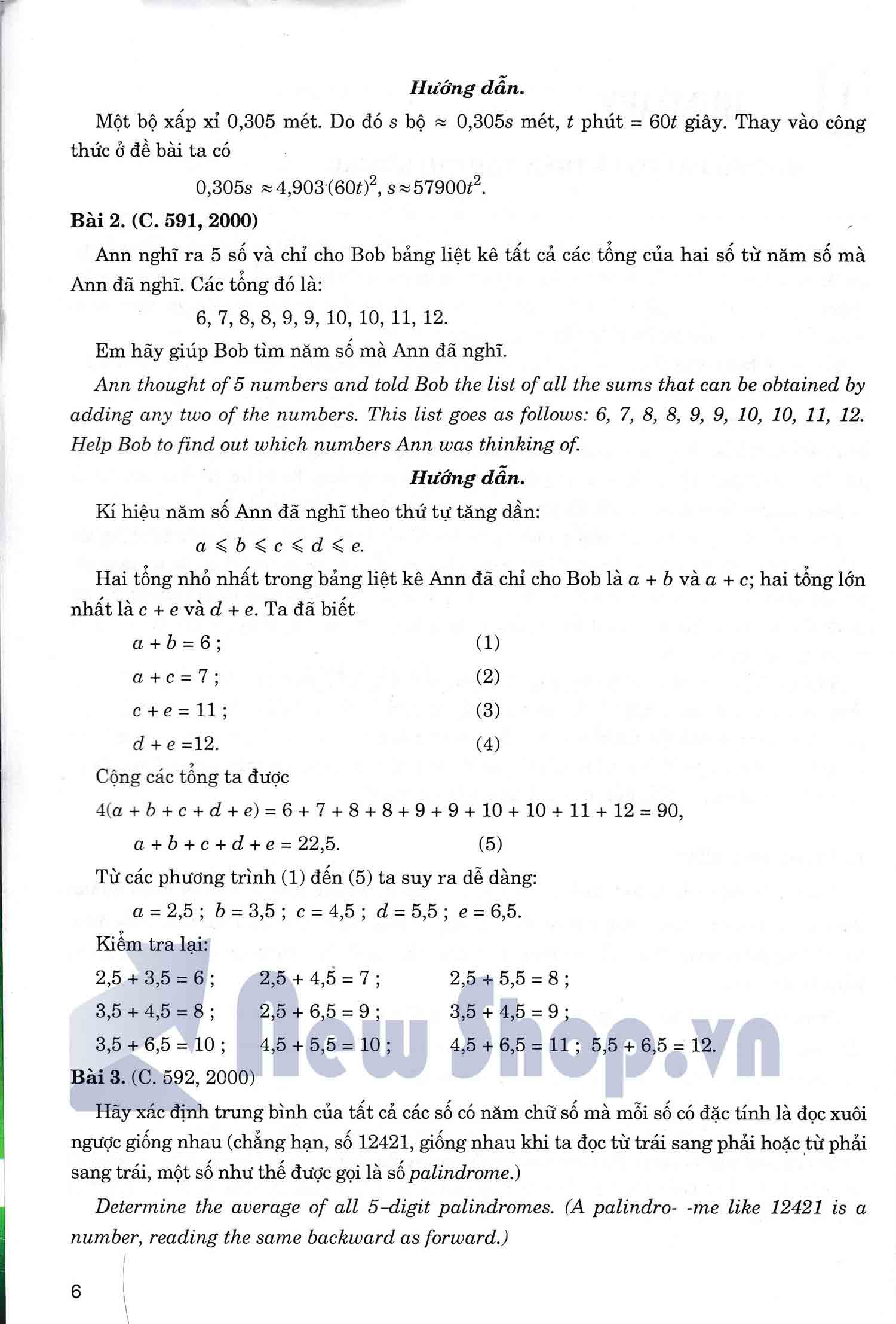 Cuốn sách còn giới thiệu thêm một số bài toán trên các tạp chí như tạp chí Komal, một số cuộc thi liên quốc gia như cuộc thi Áo – Ba Lan, Olympic Toán Balkan…. Tất cả bài toán được tuyển chọn đều có hướng dẫn giải chi tiết và mỗi đề toán đều kèm theo bản tiếng Anh để bạn đọc, nhất là các em học sinh THPT, tiện đối chiếu và trau dồi thêm ngoại ngữ cho bộ môn Toán. Chúc các bạn học tốt !