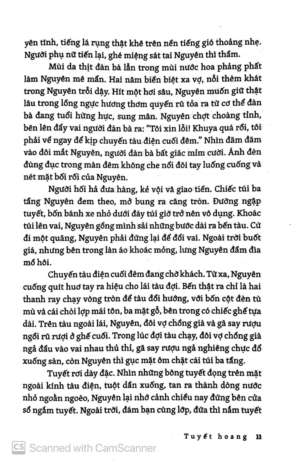 Tuyết Hoang - tiểu thuyết do chính người trong cuộc viết nên ít nhiều có hơi hướng của một tự truyện với những trải nghiệm nơi xứ người suốt một thời trai trẻ. Nhân vật chính là một trí thức Hà Nội. Hành trình của Nguyên cũng là số phận của một thế hệ người Việt thời đó. Họ là những con người mang theo “những khát vọng đổi đời ở một xứ sở xa lạ đầy cám dỗ hấp dẫn vật chất nhưng cũng là những cạm bẫy đời người nguy hiểm.”