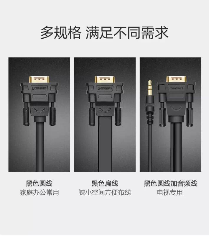 Ugreen 11618 Cáp chuyển đổi DVI 24+5dương sang VGA dương dài 3m DVI24+5 male to VGA male cable DV102 1. Length : 3M 2. Color : Black 3. Cable DVI24+5 male to VGA male 4.