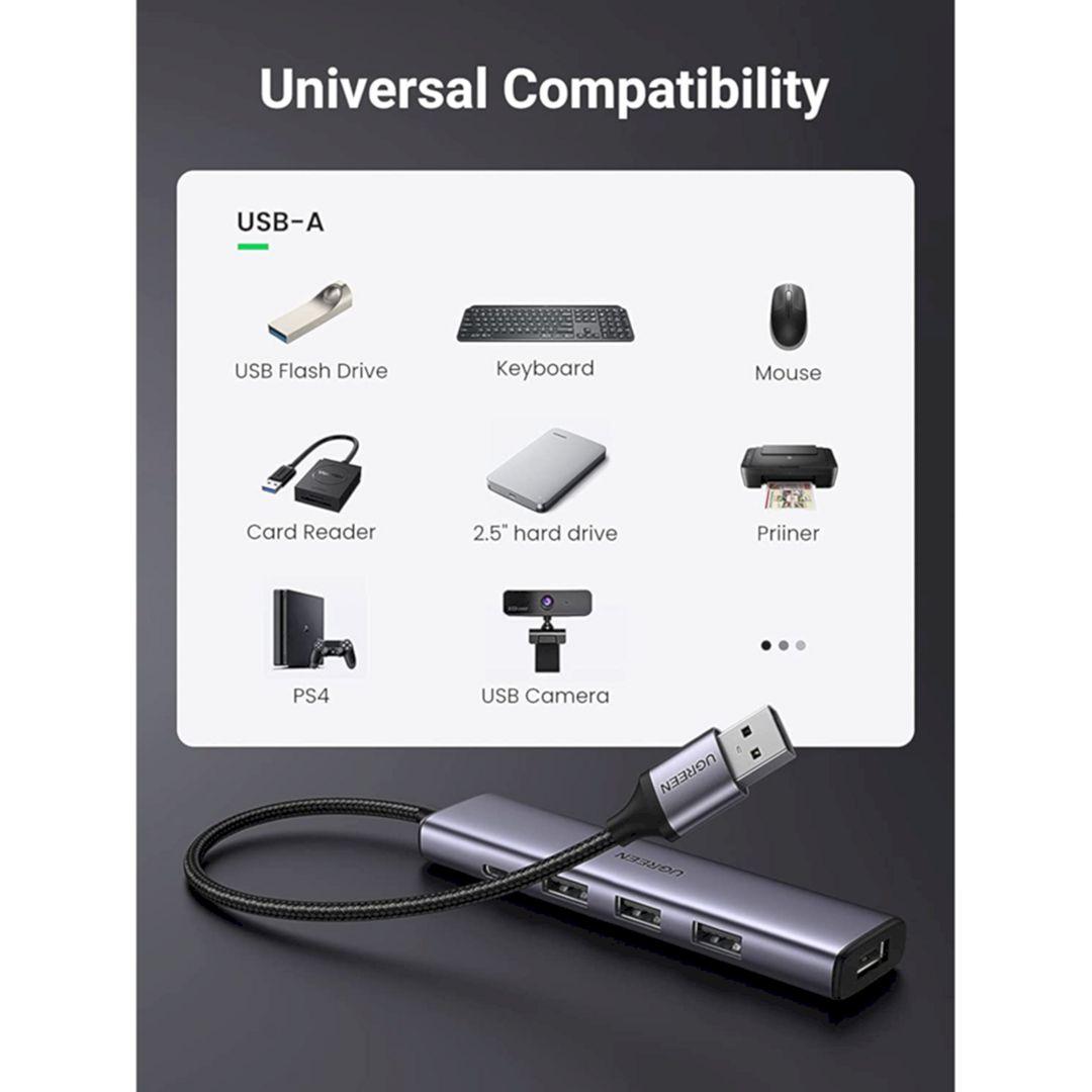 Ugreen 20277 1m 4 ports usb 2.0 hub with micro usb power port màu đen cr106 1. Input : USB-A 2. Output : 4 Port USB 2.0 . 3. Color : Black 4. Length :