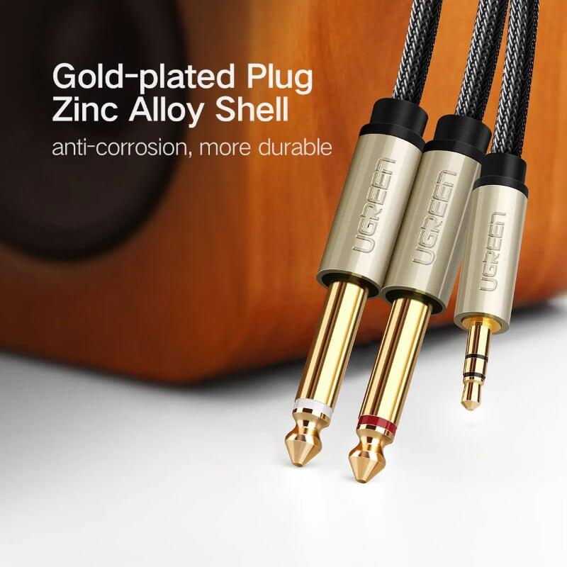Mua tại TiktokUgreen 40793 3.5Mm Trs To Dual 6.35Mm/6.5Mmts Audio Cable 3M AV126