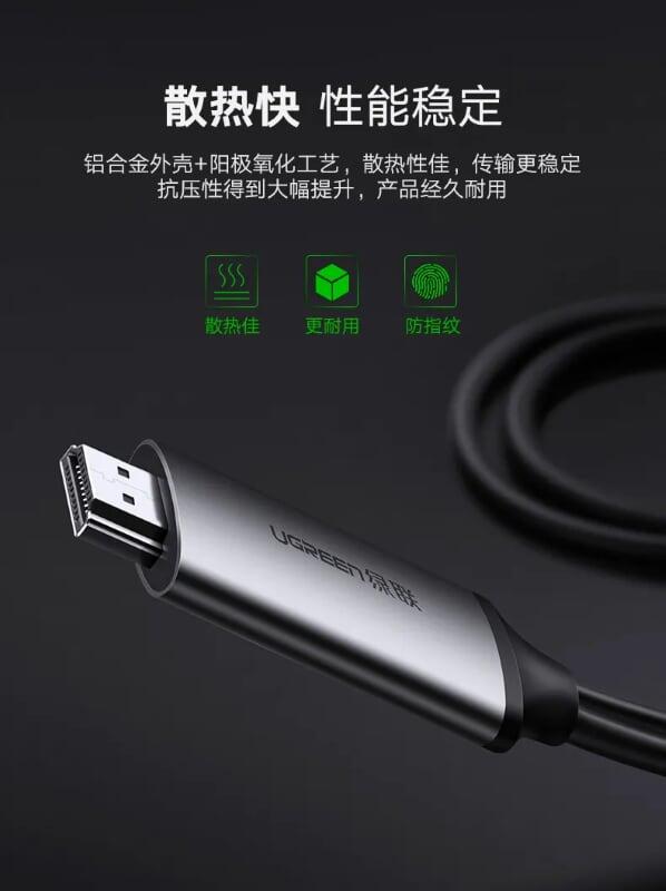 ✨Ugreen UG50544CM183TK 1.5M màu Xám Cáp chuyển đổi TYPE C sang HDMI dương + hỗ trợ cổng USB cấp nguồn - HÀNG CHÍNH HÃNG