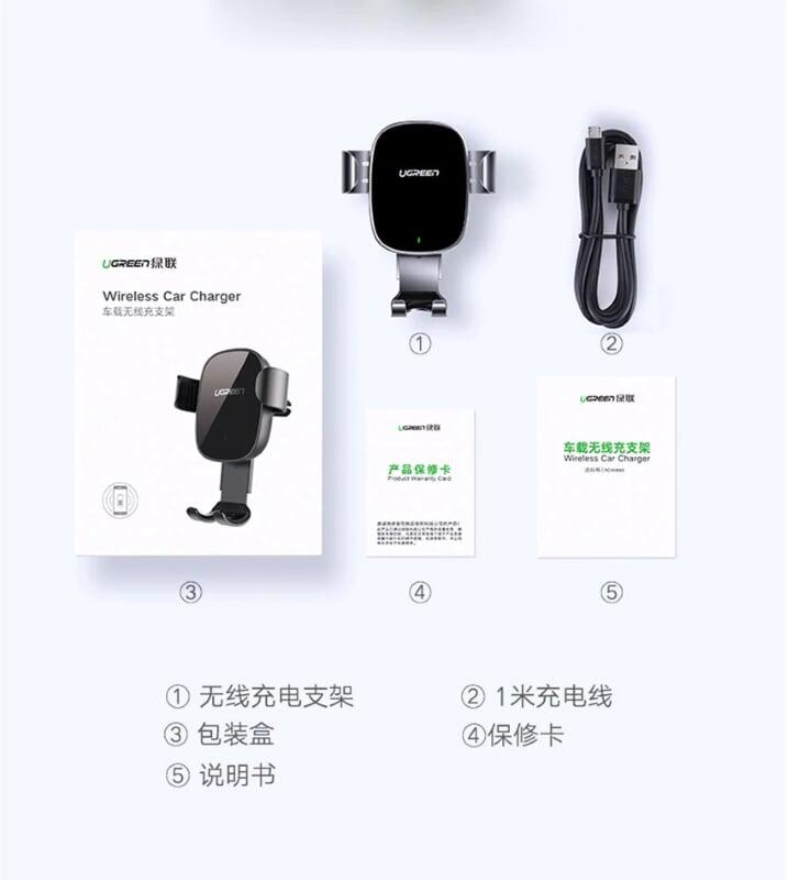 Ugreen 50583 Car Wireless Charger Cd157 1. " Input: 12V-1.5A 2. Output: 7.5W/10W " 3. Color: Black 4. 600 g 5. 20 x 10 x 8 cm