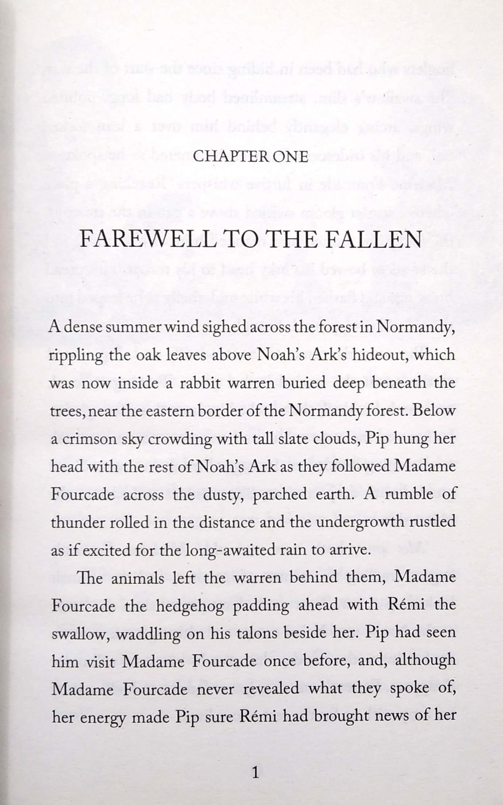 Young mouse Pip Hanway is in France as she continues fighting for the French Resistance group Noah's Ark: a secret gang of animals operating beneath the feet of human soldiers, whose aim is to liberate France and secure the victory of the Allies. Determined to reach her ancestral home of the Umbrella Museum in Italy, Pip hopes she can find long-lost family and a home. But as Pip makes the perilous journey through occupied territory, she soon realizes that danger comes from all sides and that the enemy is all around, and she does everything she can to fight for her friends.