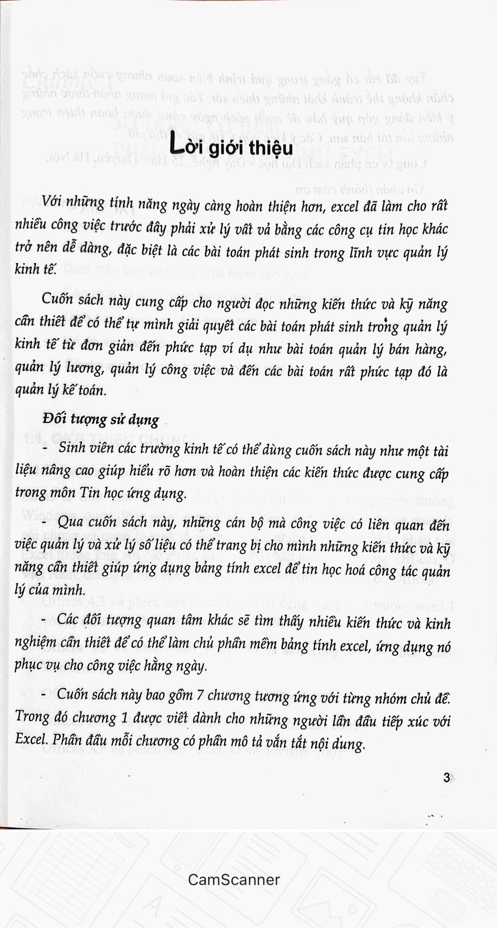 Với những tính năng ngày càng hoàn thiện hơn, excel đã làm cho rất nhiều công việc trước đây phải xử lý vất vả bằng các công cụ tin học khác trở nên dễ dàng, đặc biệt là các bài toán phát sinh trong lĩnh vực quản lý kinh tế. Cuốn sách này cung cấp cho người đọc những kiến thức và kỹ năng cần thiết để có thể tự mình giải quyết các bài toán phát sinh trong quản lý kinh tế từ đơn giản đến phức tạp ví dụ như bài toán quản lý bán hàng, quản lý lương, quản lý công việc và đến các bài toán rất phức tạp đó là quản lý kế toán. Đối tượng sử dụng Sinh viên các trường kinh tế có thể dùng cuốn sách này như một tài liệu nâng cao giúp hiểu rõ hơn và hoàn thiện các kiến thức được cung cấp trong môn Tin học ứng dụng. Qua cuốn sách này, những cán bộ mà công việc có liên quan đến việc quản lý và xử lý số liệu có thể trang bị cho mình những kiến thức và kỹ năng cần thiết giúp ứng dụng bảng tính excel để tin học hoá công tác quản lý của mình. Các đối tượng quan tâm khác sẽ tìm thấy nhiều kiến thức và kinh nghiệm cần thiết để có thể làm chủ phần mềm bảng tính excel, ứng dụng nó phục vụ cho công việc hằng ngày. - Cuốn sách này bao gồm 7 chương tương ứng với từng nhóm chủ đề. Trong đó chương 1 được viết dành cho những người lần đầu tiếp xúc với Excel. Phân đầu mỗi chương có phần mô tả vắn tắt nội dung.