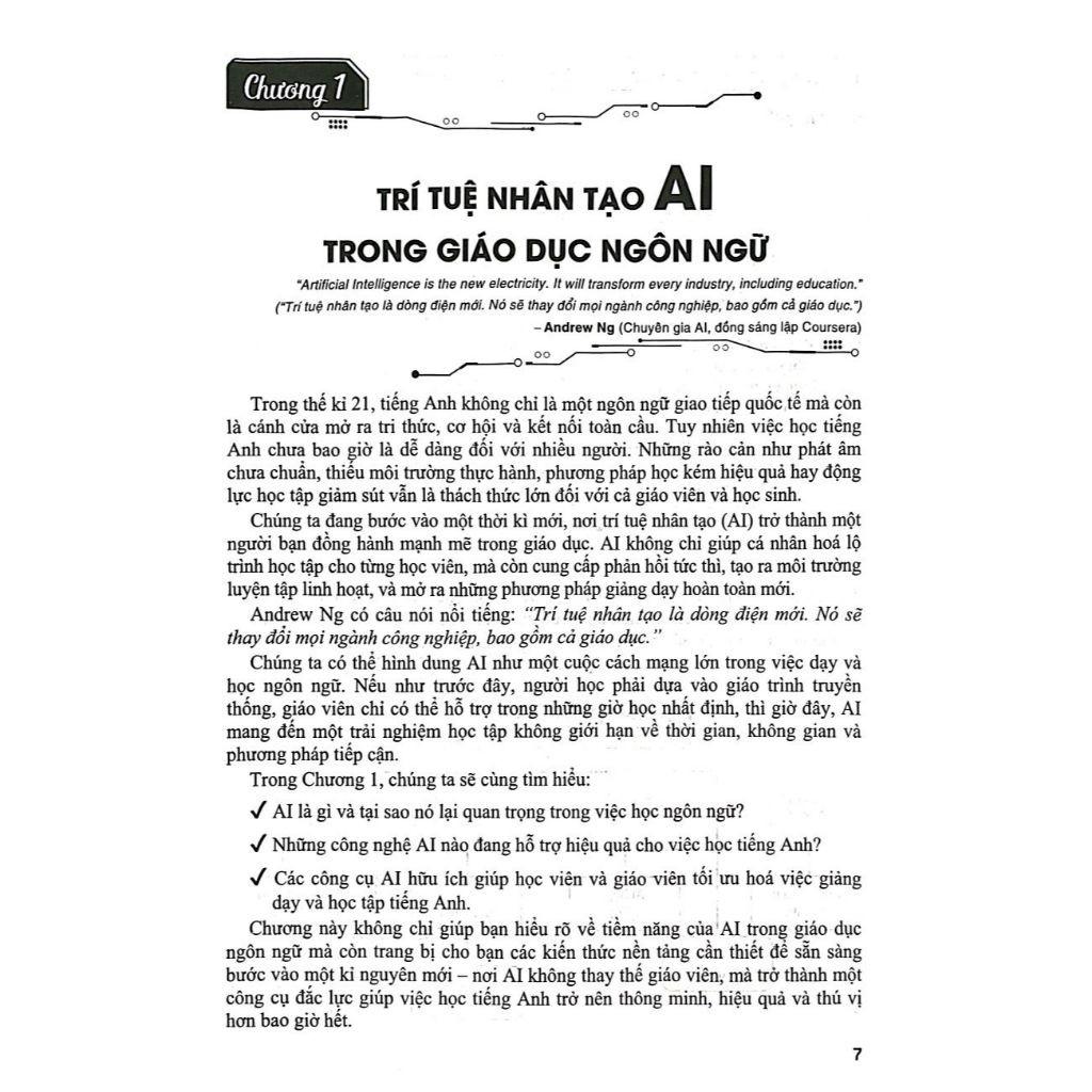 Cuốn sách này không chỉ dành cho những giáo viên và học sinh yêu thích công nghệ, mà còn dành cho mọi giáo viên và học sinh mong muốn nâng cao chất lượng học tập tiếng Anh bằng những phương pháp hiệu quả nhất. Bạn không cần phải là chuyên gia công nghệ để ứng dụng AI – chỉ cần bạn có tinh thần sẵn sàng học hỏi và đổi mới.