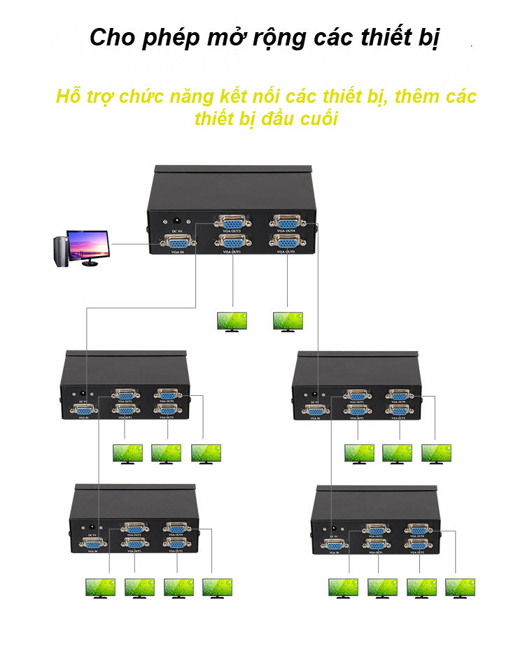 ✨Unitek U8707 - 01 Bộ Chia VGA Unitek 1 ra 4 Hỗ Trợ Độ Phân Giải 1920*1440 @60Hz Khoảng Cách Truyền Xa Lên Tới 30m - Kèm Nguồn AnZ - Hàng Chính Hãng