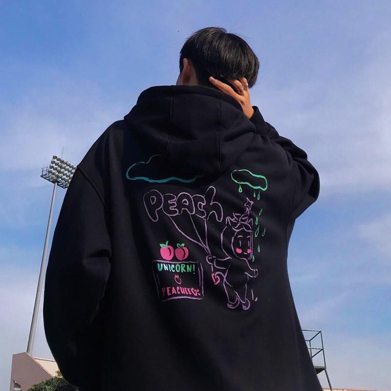 ✨UPZ Áo Khoác Hoodie In Peachee (Đen)