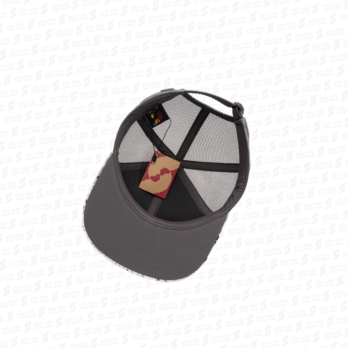- Sử dụng kẹp phơi vào đai bên trong nón (vị trí giữa lưỡi trai), sao cho lưỡi nón hướng phía trên và dây đuôi hướng phía dưới.