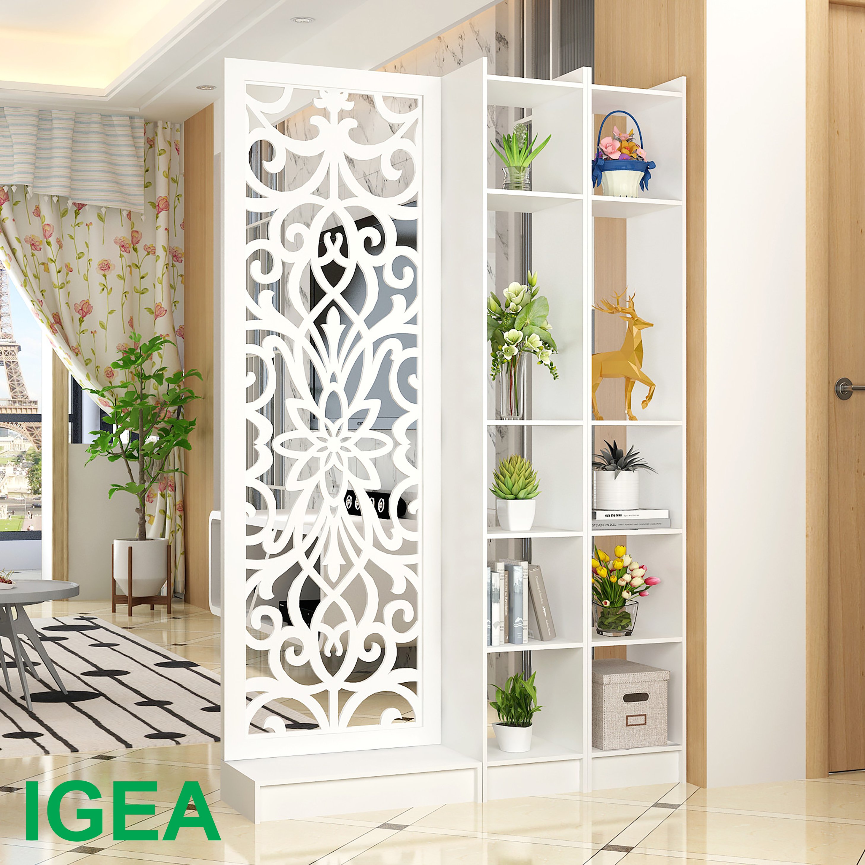 - Vách ngăn liền kệ vừa che không gian, tách không gian như ý, vừa có thể lưu trữ đồ đạc, sách vở, đồ trang trí .