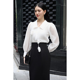 ✨Valen Shirt - Áo sơ mi tơ vai nhún bồng nhẹ thiết kế cao cấp WHITE CHIC