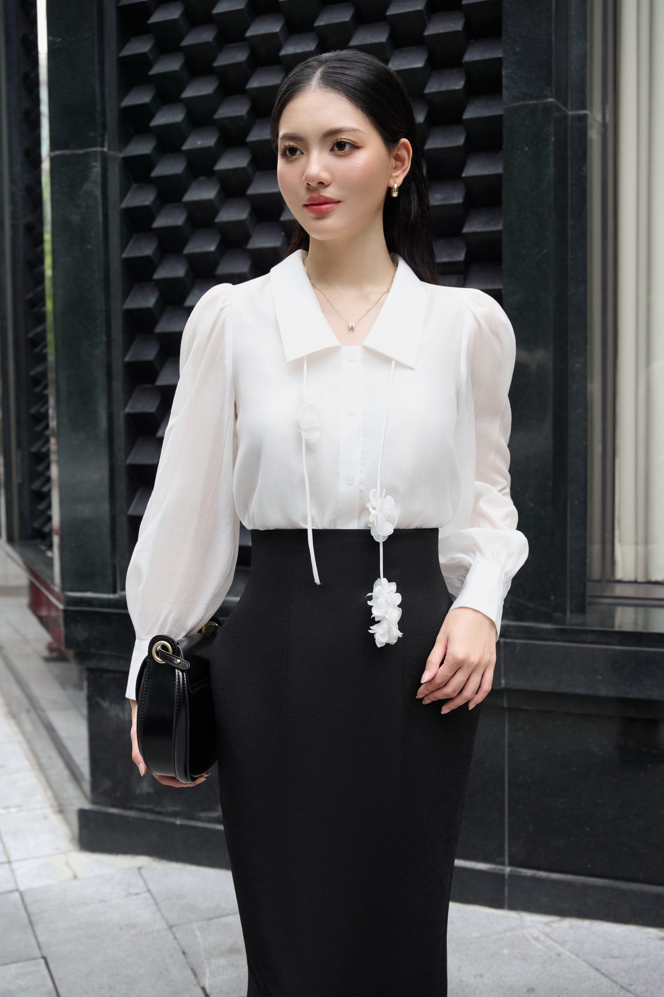 Mix thêm chiếc áo sơ mi tay phồng nữ tính là Quý cô đã có ngay outfit mới cho các buổi họp hay gặp gỡ đối tác.